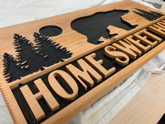 Rustic Retreat: Mountain & Forest Inspired Wood Carved 'Home Sweet Home' Sign