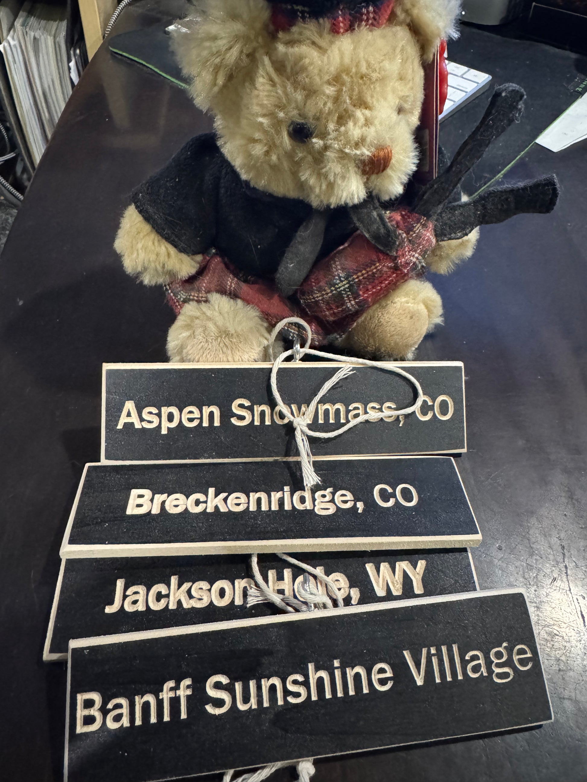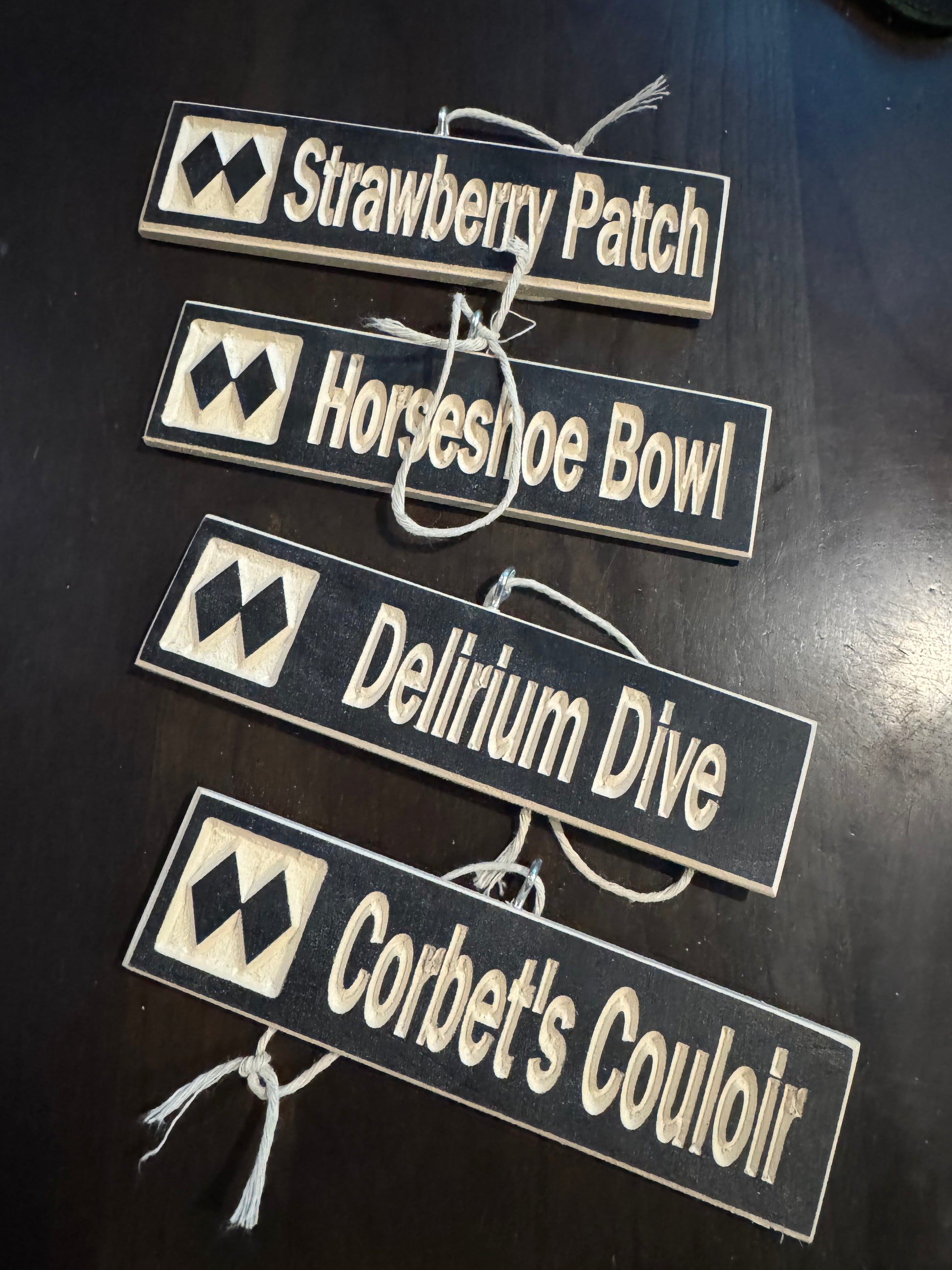 Even your Xmas tree can give out oodles of the Alpine inspired vibe this festive season with our 1.5" x 6" wood carved mini ski trail signs.
